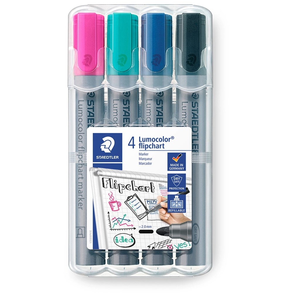 Staedtler Lumocolor Flipchart Marker 356 Assorted Colours Wallet Of 4