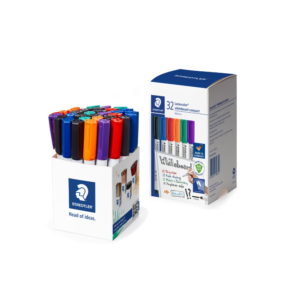 Staedtler Lumocolor Whiteboard Compact Marker Bullet Point Assorted Colours Cup of 32