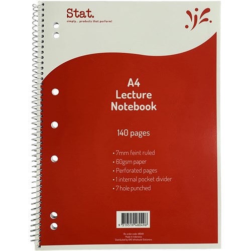 Stat Lecture Note Book Spiral A4 7mm Ruled 60gsm 140 Page Red