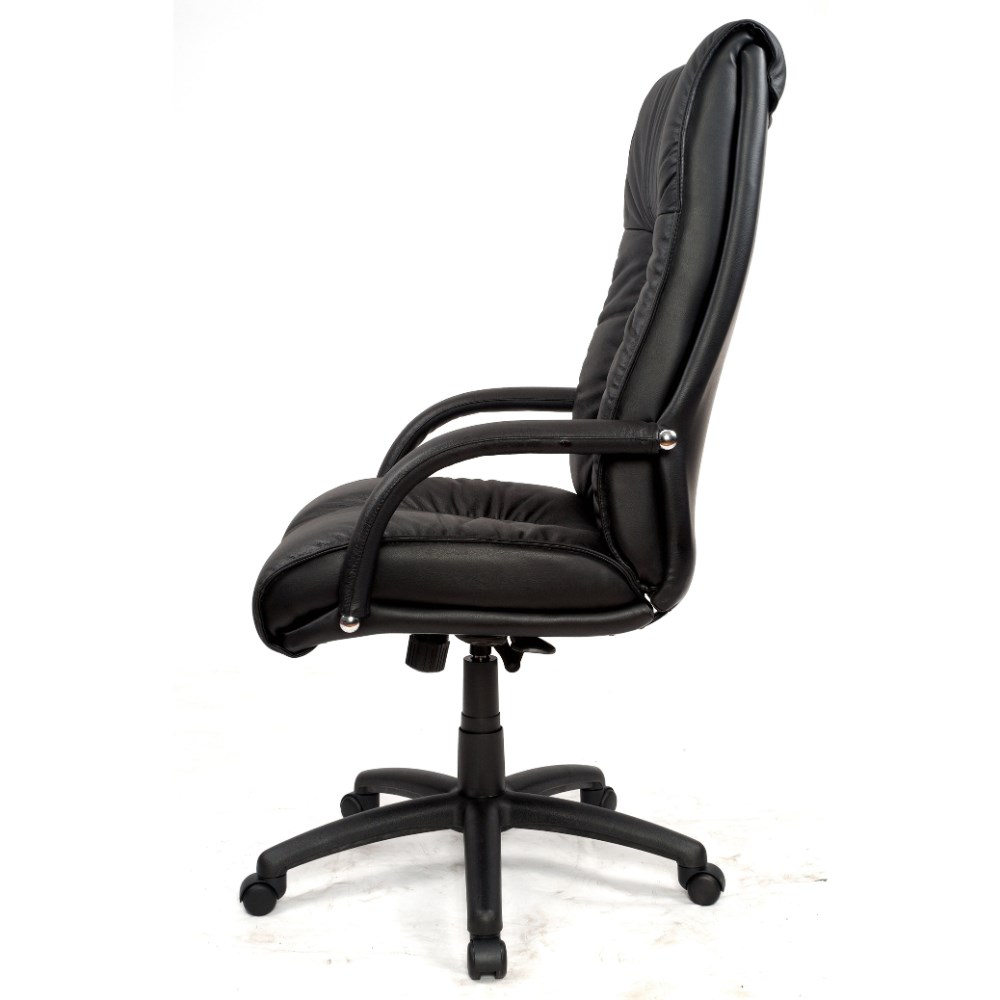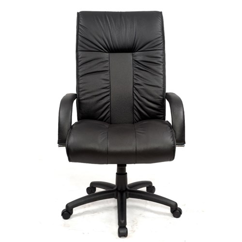Statesman Executive High Back Chair With Padded Arms Black PU Back And Leather Seat