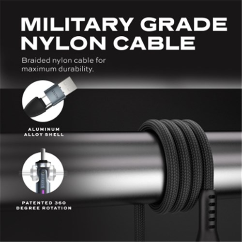 Statik 360 Pro USB-A/C To Lightning/USB-C/Micro USB Cable Universal 1 Meter Black