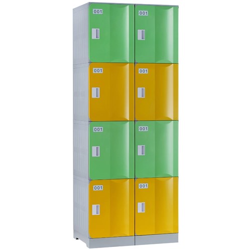 Steelco ABS Plastic Locker 4 Door Bank Of 2 760W x 500D x 1940mmH Assorted Colours