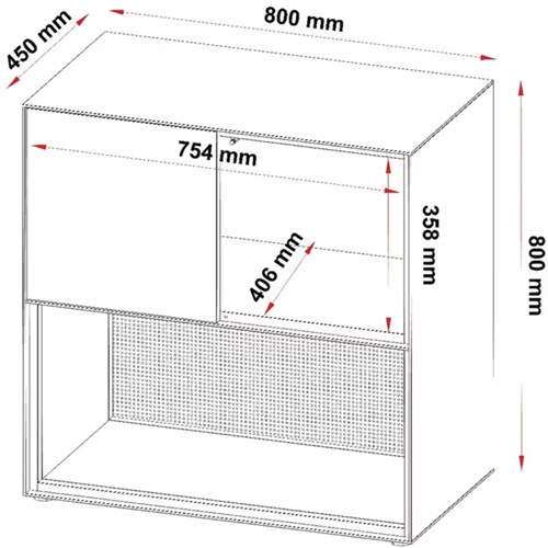 Powder coated steel door. Sleek 5mm carcass profile.