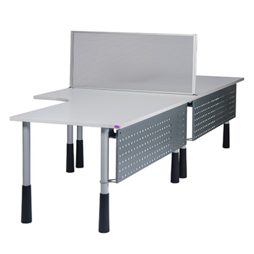 A desk mounted divider which is fully framed in aluminium providing a lightweight yet strong frame that can support the panels without being overly bulky or heavy.