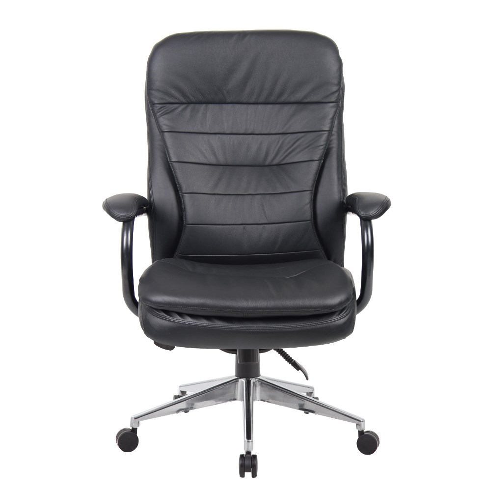 Titan Executive Medium Back Chair With Arms Black PU Back And Leather Seat