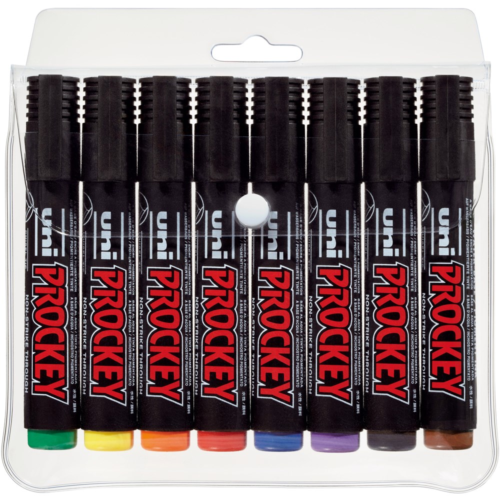 Uni-Ball PM126 Prockey Permanent Marker Chisel 5.7mm Assorted Wallet of 8
