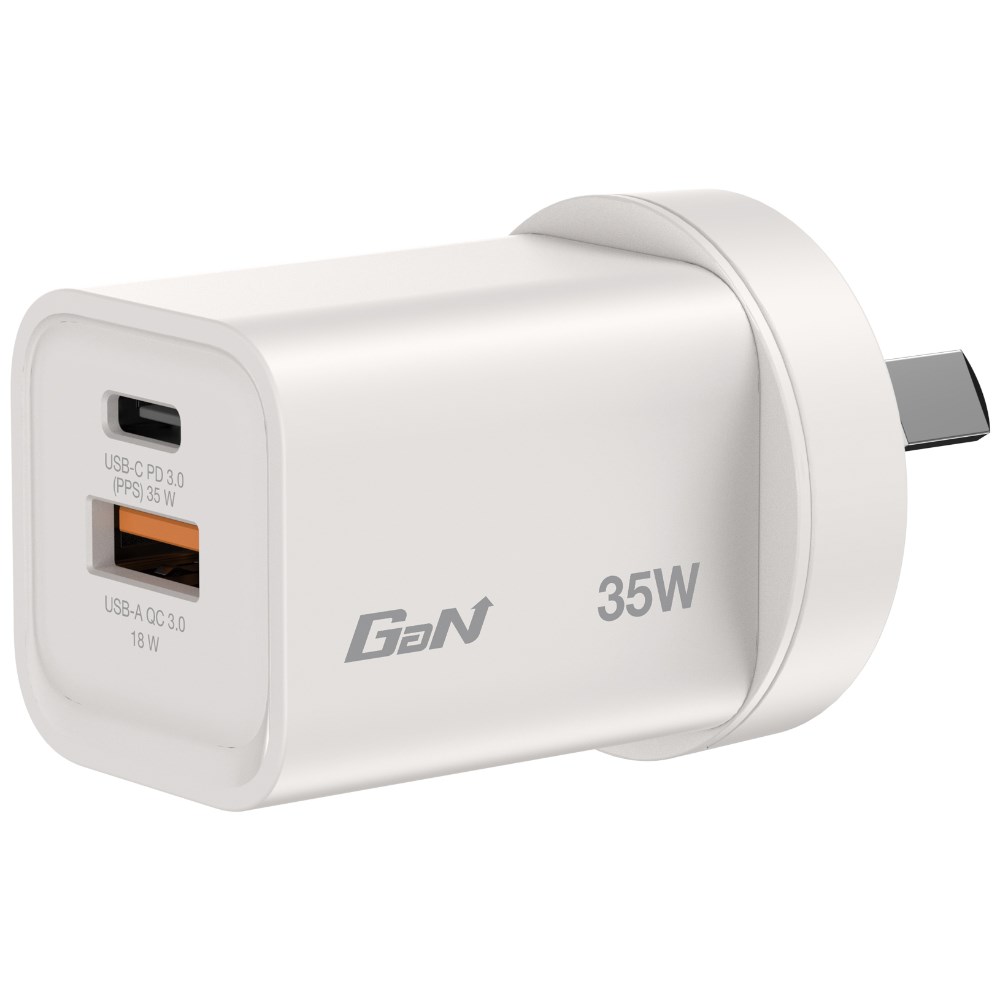 Consolidates multiple chargers into one, combining one USB-C PD 35W port, one USB-A QC 3.0 port in a sleek, palm sized design.
