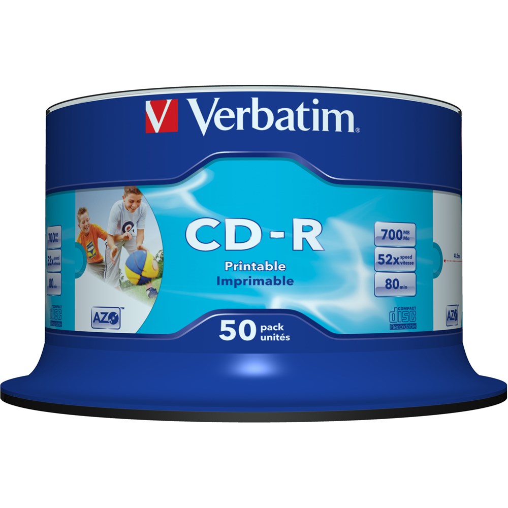 Verbatim Recordable CD-R 80Min 700MB 52X Inkjet Printable Pack Of 50 White