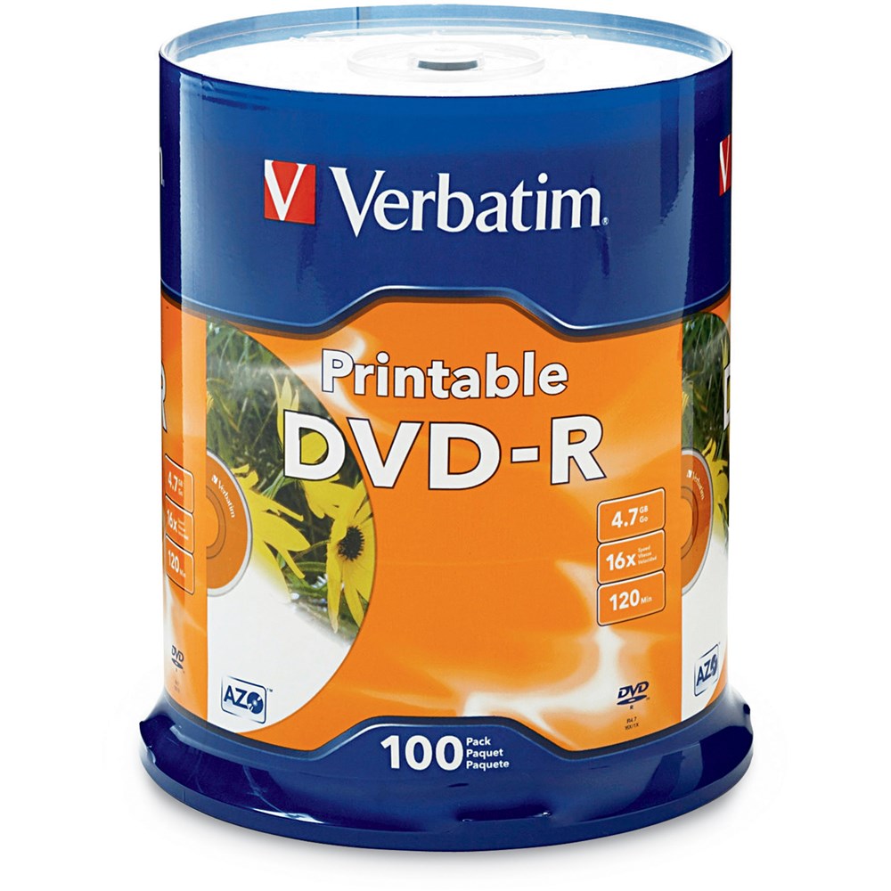 Verbatim Recordable DVD-R 120Min 4.7GB 16X Inkjet Printable Pack Of 100 White