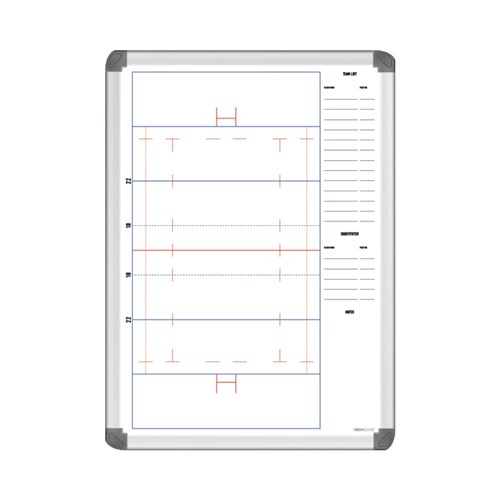 Visionchart Coaches Tactical Whiteboard 600 x 400mm Netball Aluminium Frame
