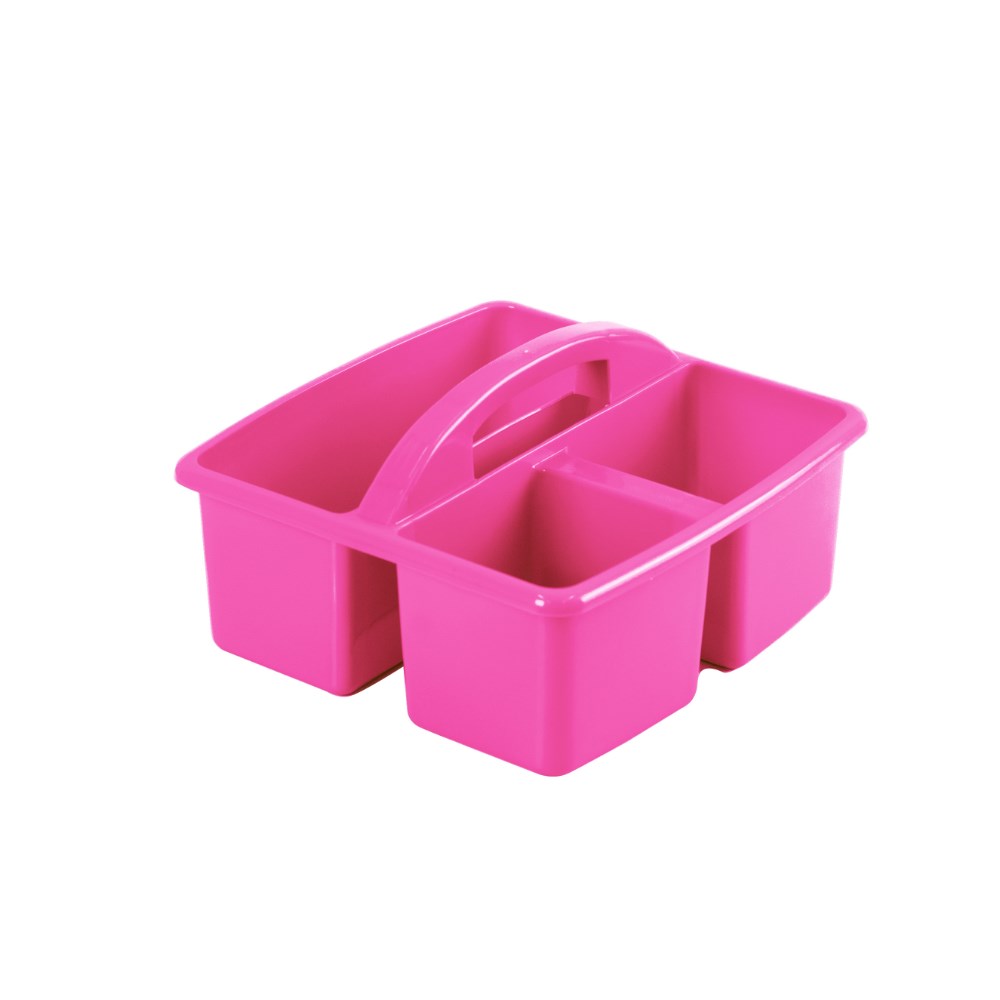 The 3 compartment caddy's features an easy-carry handle, to be moved from desk to desk in all learning spaces.