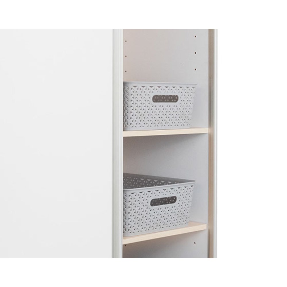 Includes 10 shelves and 10 baskets.