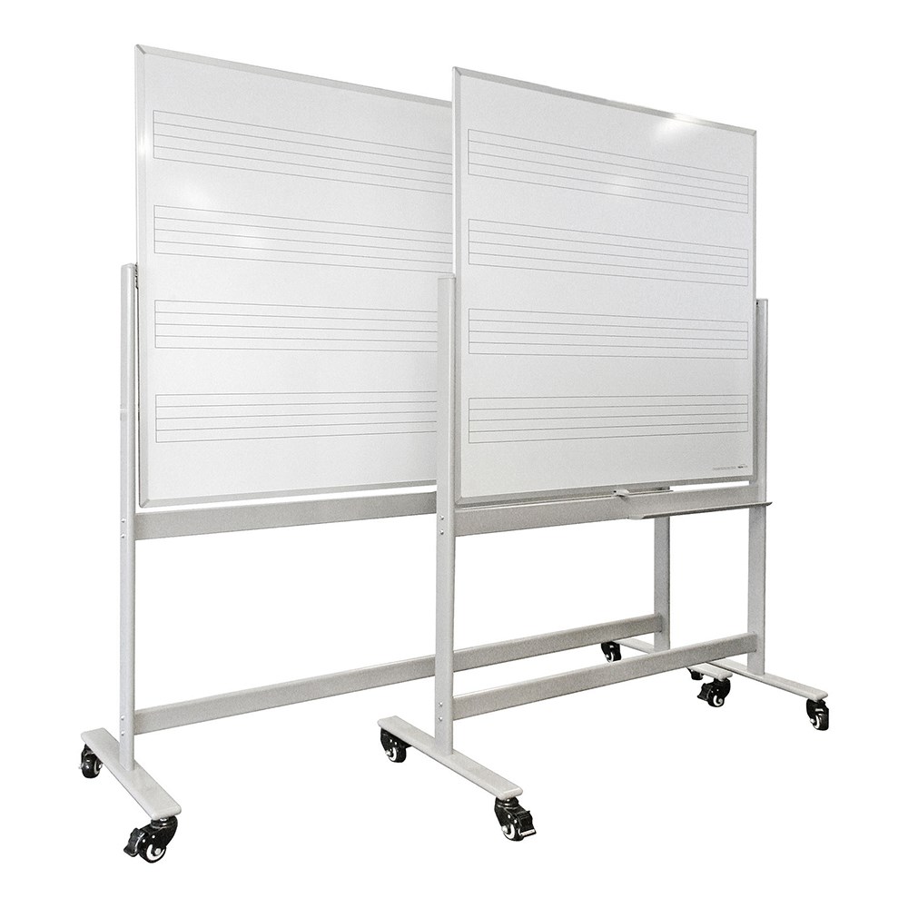 Permanently ruled with 4 music staves on one side and plain whiteboard on the other.