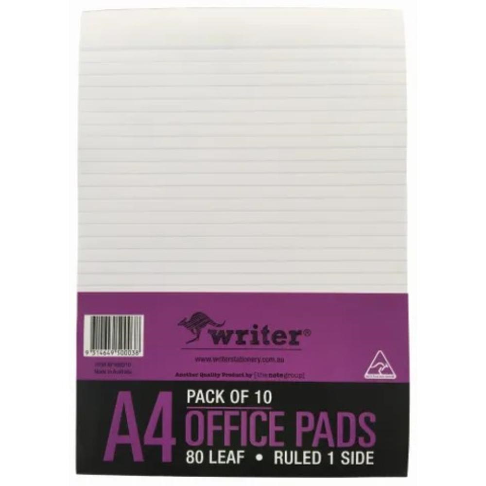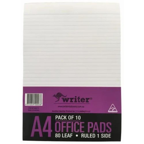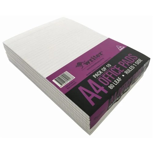 Writer Bank Office Pad A4 8mm Ruled 80 Sheet White Pack Of 10