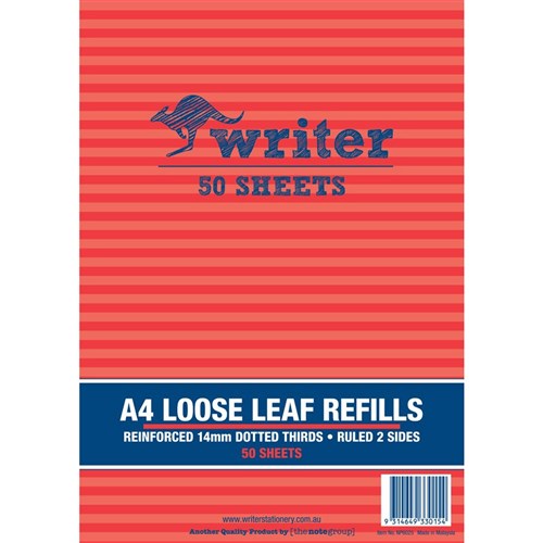 Writer Binder Refills A4 18mm Dotted Thirds Pack of 50