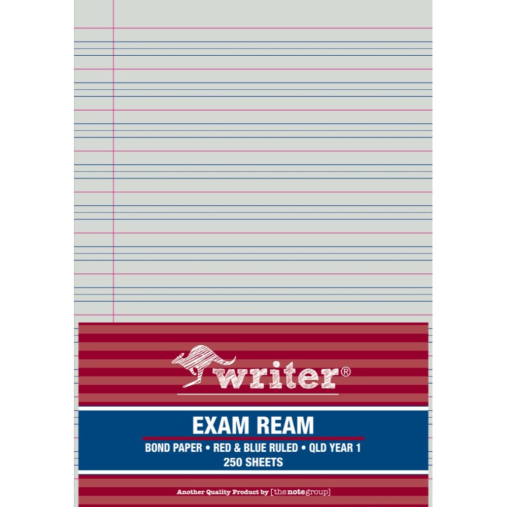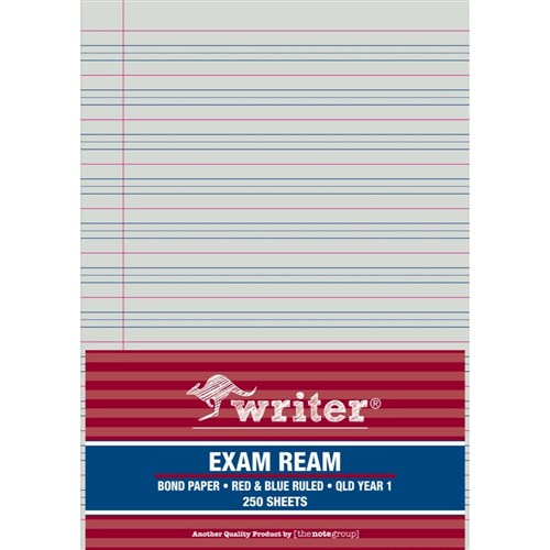 Writer Exam Ream A4 QLD Year 1 Red And Blue Ruled Portrait Ream Of 250 White