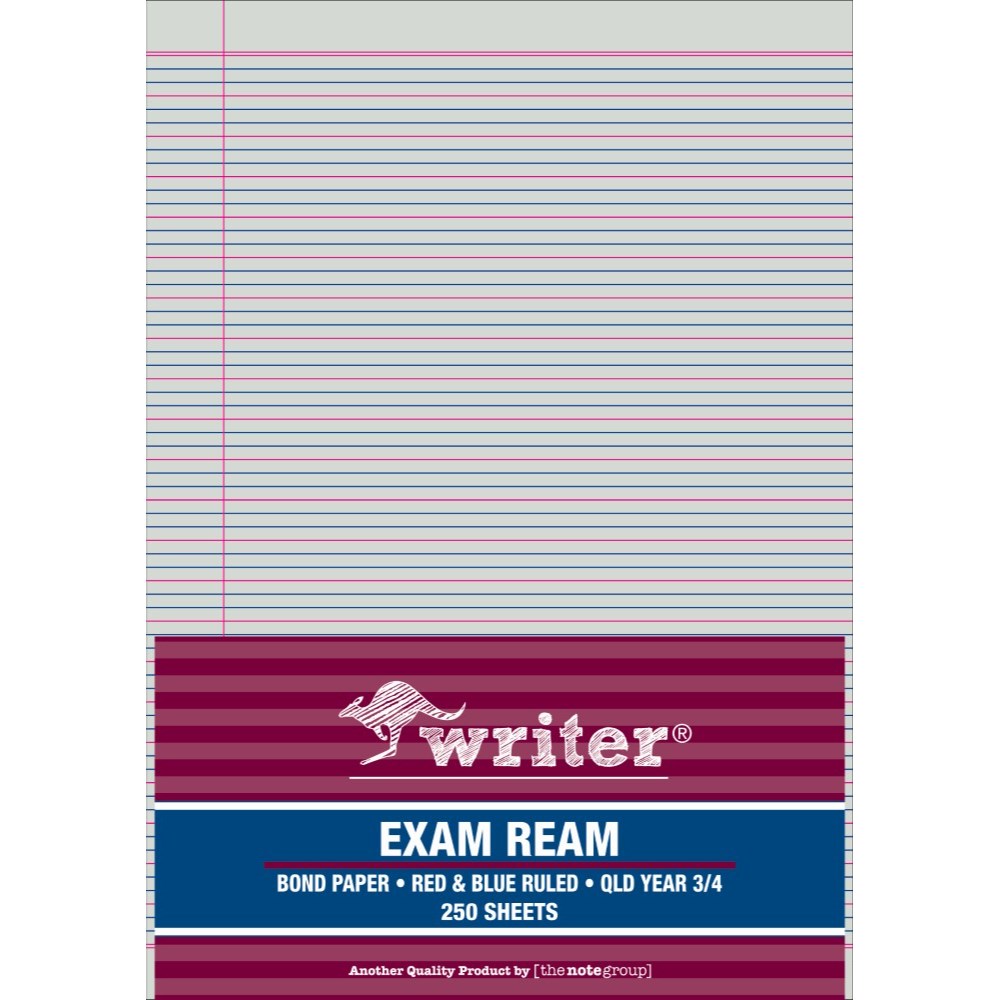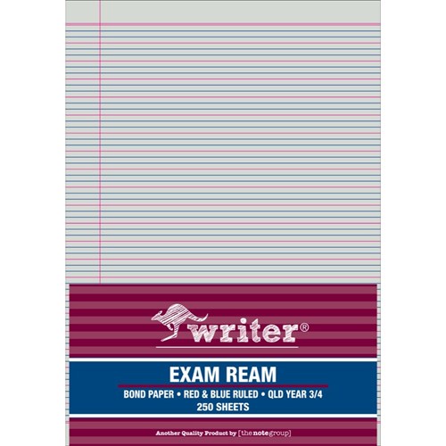 Writer Exam Ream A4 QLD Year 2 Red And Blue Ruled Portrait Ream Of 250 White