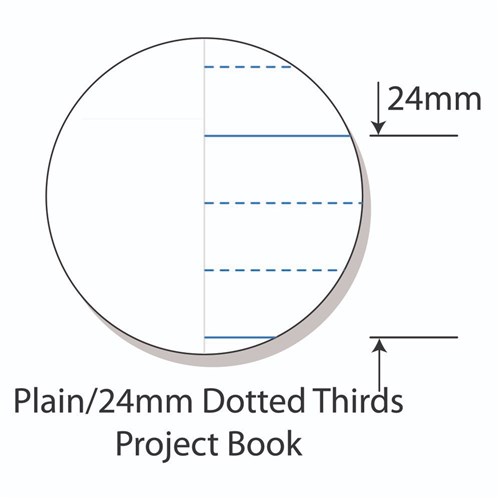 Feature heavy duty covers, high quality white 70gsm paper with blue dotted thirds ruled lines and a red margin.
