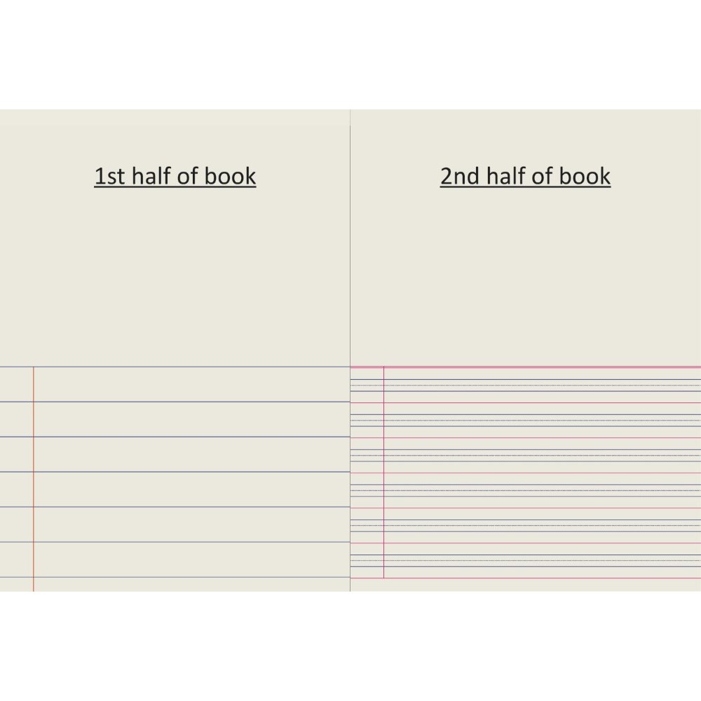1/2 page plain, 1/2 page 24mm solid ruled (first half of book).