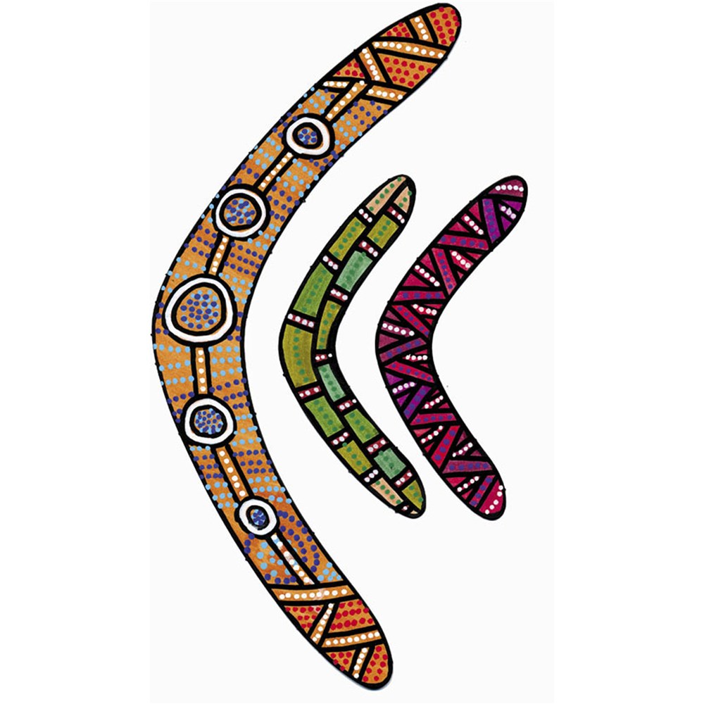 Cardboard Boomerangs, 3 large (26 cm long) and 3 small (13 cm long) per sheet.