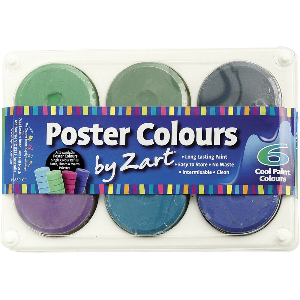Zart Poster Colours Paint Assorted Cool Colours Pack of 6